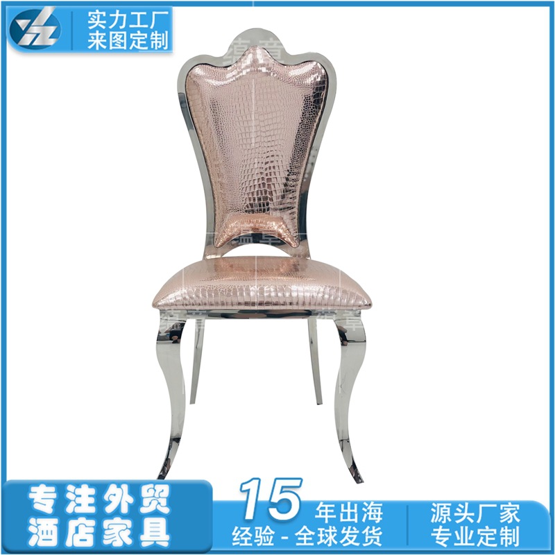 モダンライト高級ステンレス鋼ダイニングチェアピンクワニ革椅子メーカー卸売ホテルの椅子ヨーロッパの波背もたれ椅子
