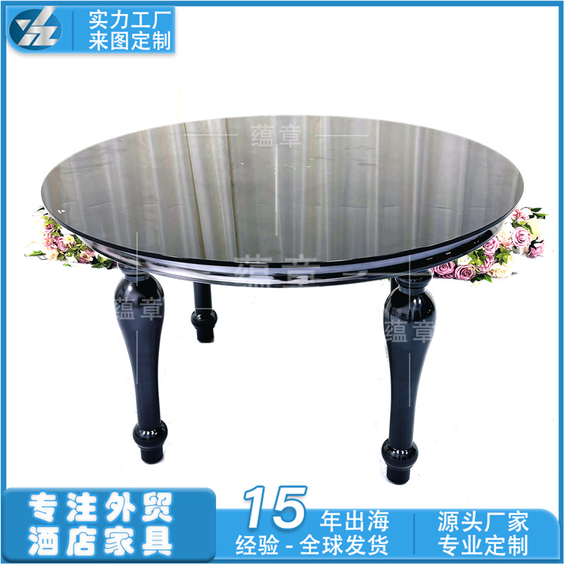 工場卸売ステンレス鋼ダイニングテーブルホテル結婚式黒ラウンドテーブルホームレストランテーブル黒チタンラウンドウェディングテーブル