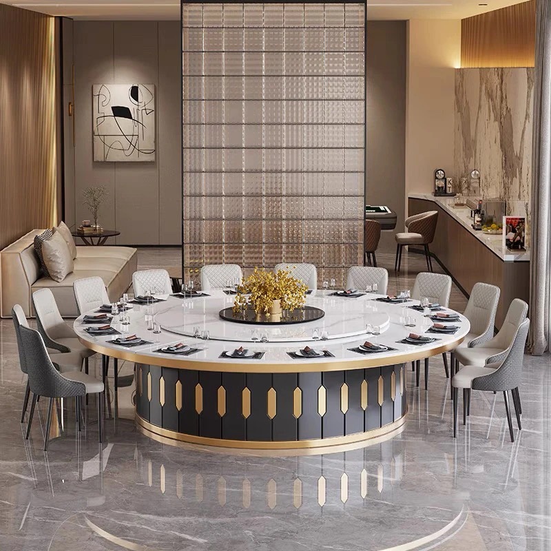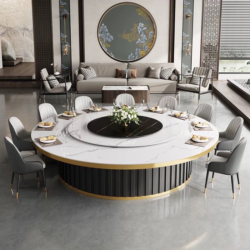 ホテル電動大型ラウンドテーブルスレートターンテーブル20人用ボックスダイニングテーブルホテル宴会テーブルと椅子モダン卸売ハイエンド