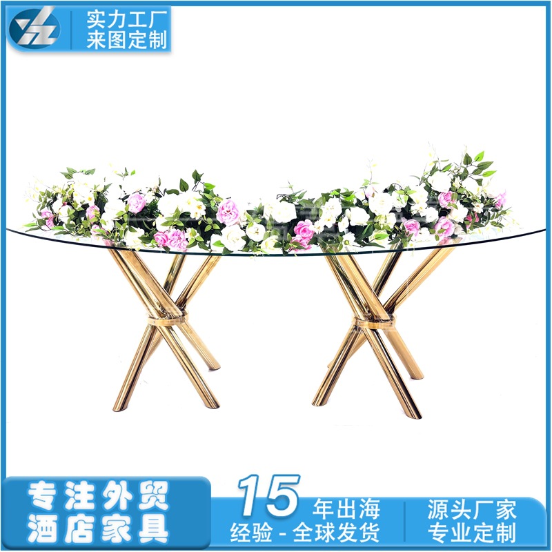 2025 新デザインステンレス鋼金属クロステーブル脚ガラスコーヒーテーブル蛇行ラウンド半円形ウェディングテーブル