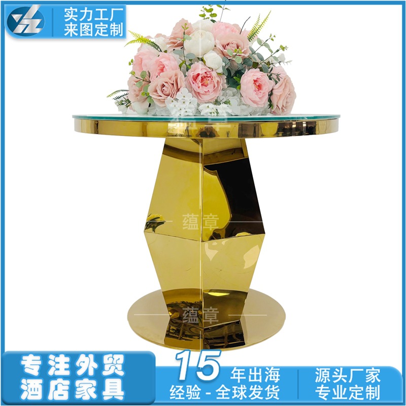 ホテル商談テーブル ステンレス丸テーブル モダン シンプル ウェディングデコレーション ケーキテーブル ガラス丸テーブル コーヒーラウンドテーブル