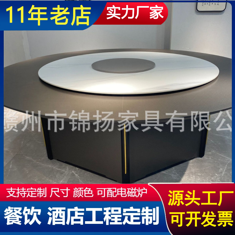 ホテル大型ラウンドテーブル岩板電気ダイニングテーブル複数人用ホテル家庭用業務用電磁調理器鍋宴会テーブル