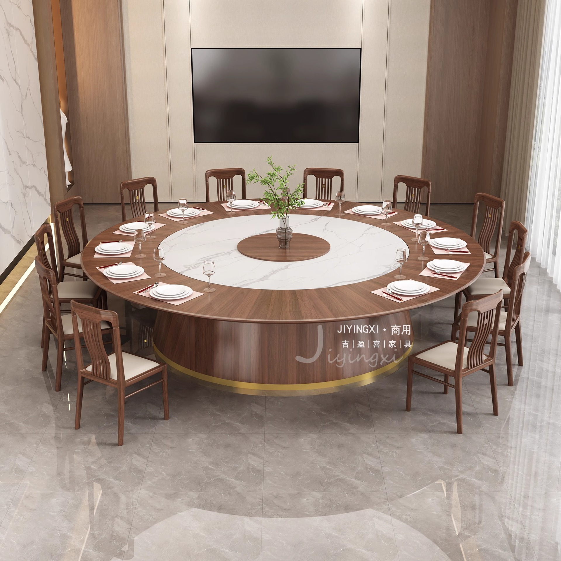 新しい中国風ホテル大型円形テーブル電動無垢材ダイニングテーブルと回転式ロックプレート付き椅子15人用、20人用、ホテルクラブ商業用