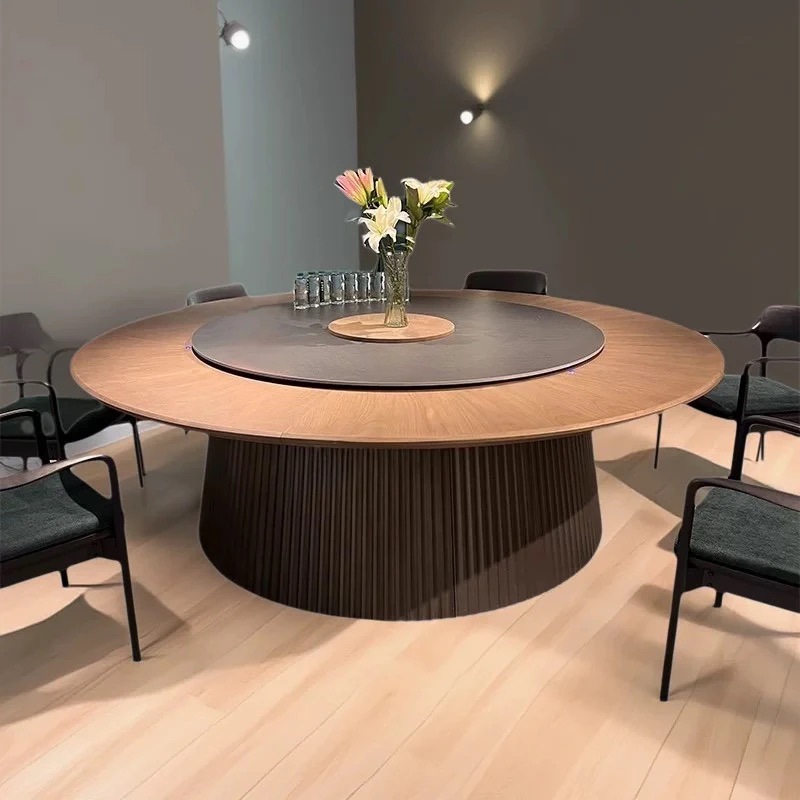 高級ホテル電動大型丸テーブル無垢材無塗装防火ボード素材10人用20人用ダイニングテーブルレストランボックスクラブ