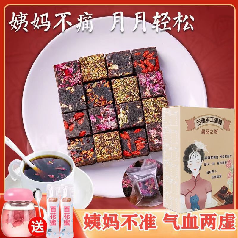 雲南古法黒糖塊紅糖姜棗茶大叔母薔薇老姜サトウキビ老紅糖塊独立小包装