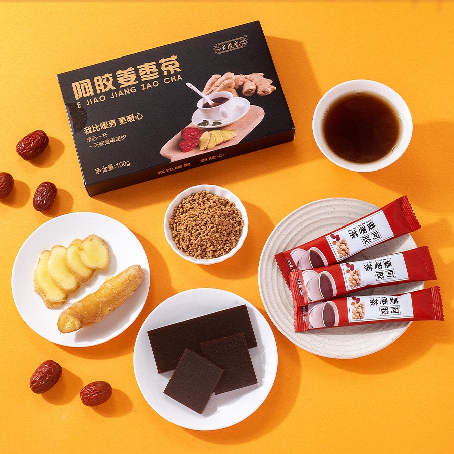 ロバ皮ゼラチン黒糖生姜茶すぐに飲めるインスタント固形茶卸売赤いナツメヤシクコ女性温かいお茶