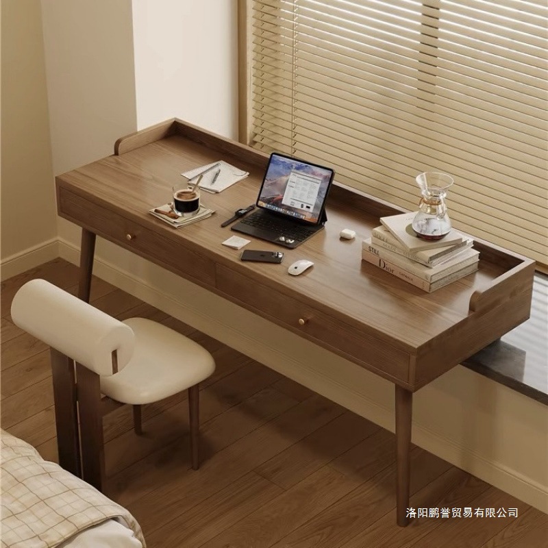 引き出し収納キャビネット付き無垢材出窓デスク、一体型高低脚コンピューターデスク、長短脚窓枠学習デスク