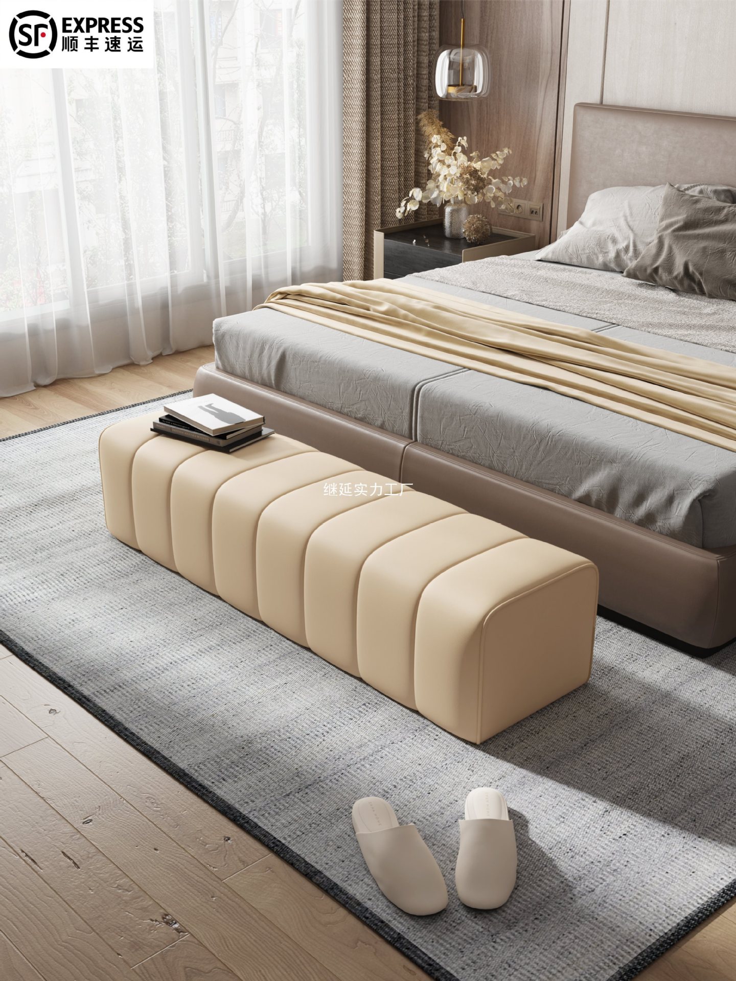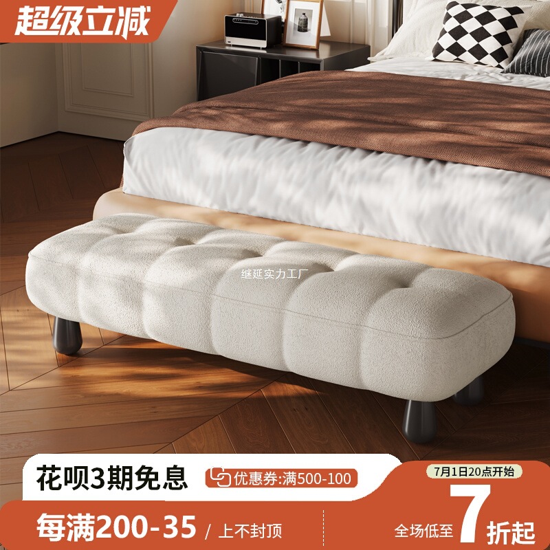 中古クリームベッドサイドスツール寝室ベッドサイドクローク着替えスツールデザイナーハイエンドロングベンチソファスツール