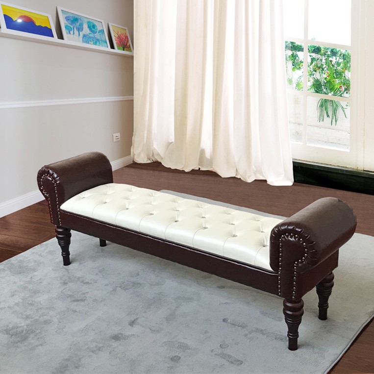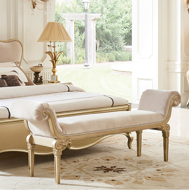 フレンチクリームスタイルのベッドエンドスツール衣料品店シェルパソファスツールクロークスツール寝室のベッドエンドスツールロングベンチ木製