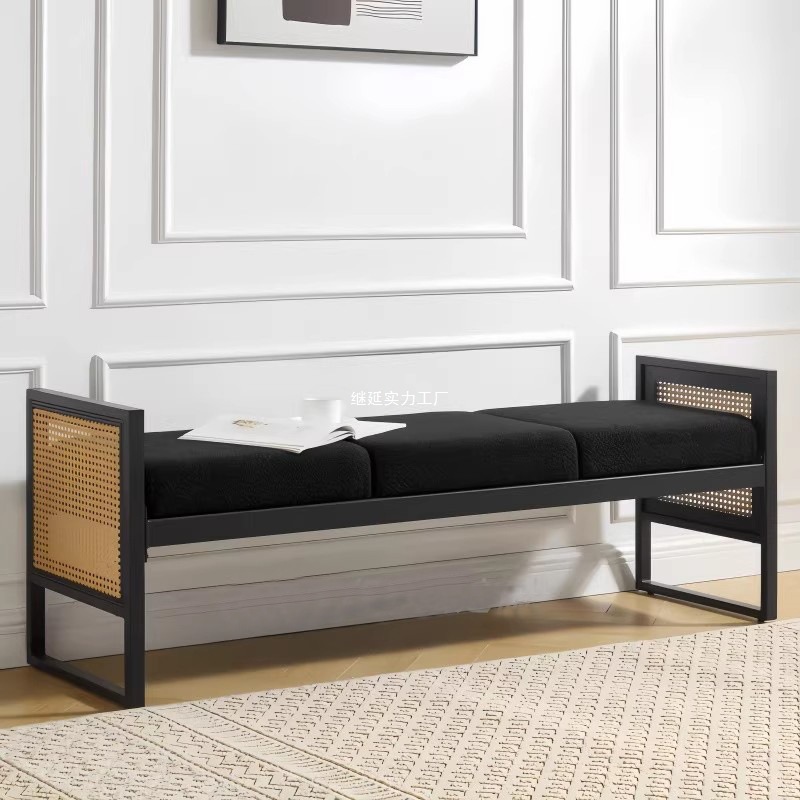 イタリアのライト高級ベッドエンドベンチ、レトロな籐ソファベンチ、ホームエントランスシューズベンチ、デザイナーファブリックベンチ