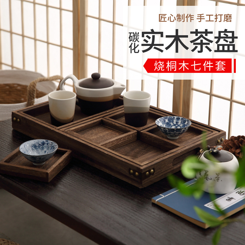 レトロ家庭用7点セット炭焼きトレー日本式工夫茶器ホテル茶トレードライフルーツ菓子木皿