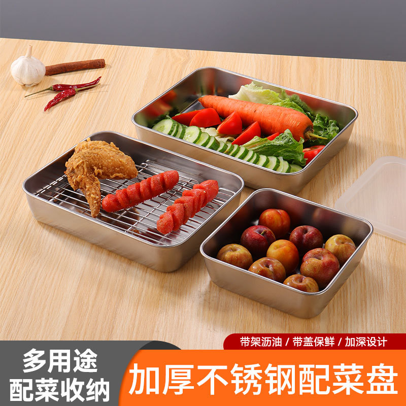 ステンレス深皿 304 和風平底角皿 蓋付き 鮮度保持角皿 水切りベーキングパン
