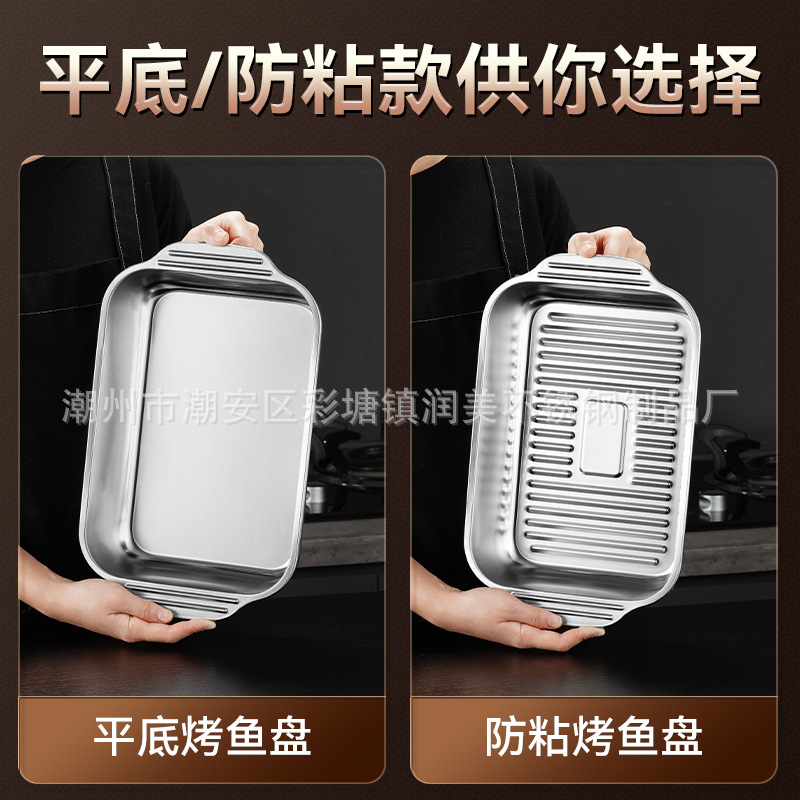 クロスボーダーステンレス鋼グリル魚プレート両耳長方形家庭用極厚商業グリル魚ストーブノンスティックベーキングパン蓋付き