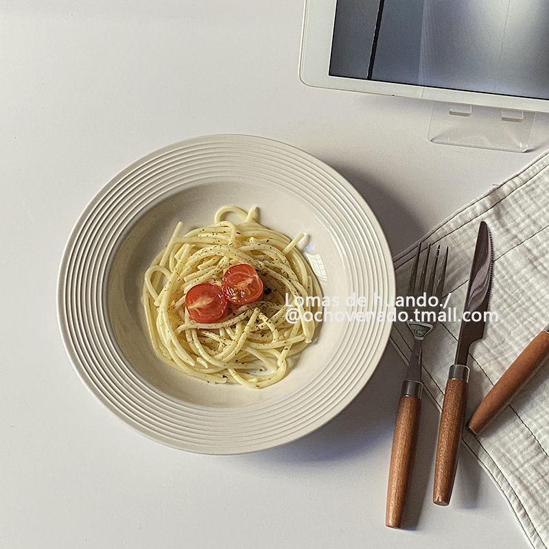 Ocho venadoシンプルストライプセラミック洋食皿ステーキパスタ皿麦わら帽子皿深皿サラダ皿ins