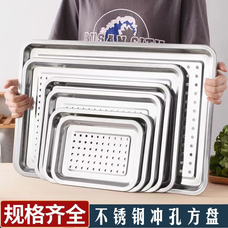 ステンレス角皿パンチング茶皿食品フィルター皿角型トレイ食堂蒸し餃子皿焼き漏れ皿