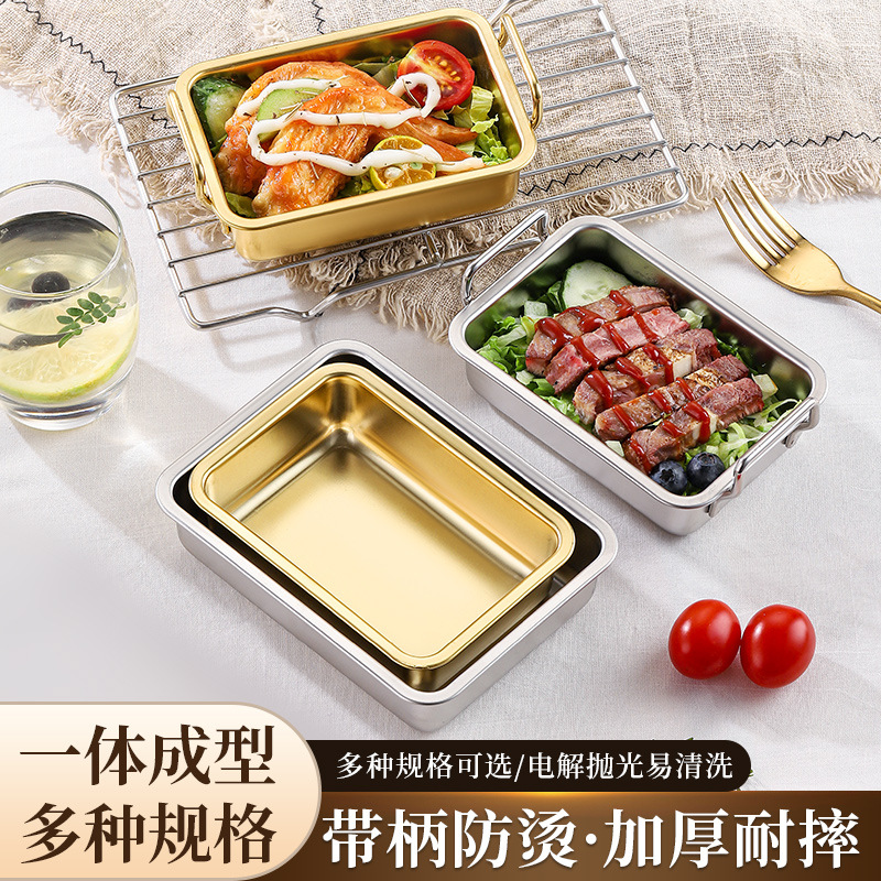 304ステンレストレー長方形純平角皿業務用キッチン焼き魚皿厚手蒸し皿