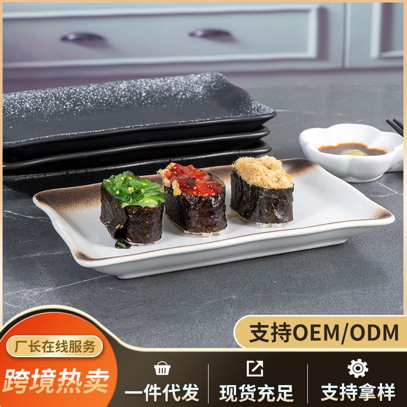 外国貿易の長方形の陶磁器の皿の商用の日の料理の軽食の皿の釉薬の色は皿の食器の波の日系の寿司の皿を並べて代行します。
