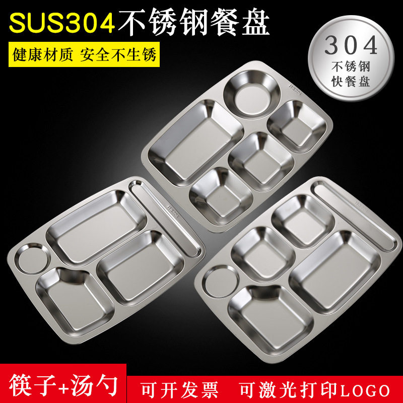 304ステンレスの食事の皿は格のファーストフードの皿を分けて厚くします。五格六格の学生は学校の食堂の食器を分けます。