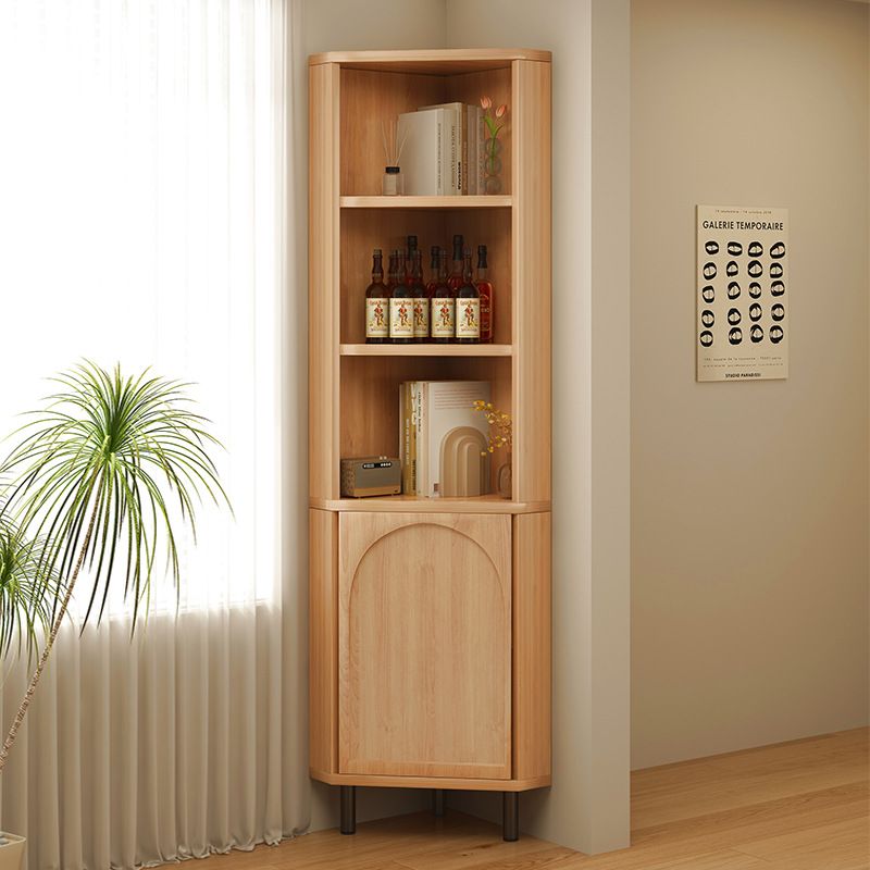無垢材コーナー収納ラック、コーナーキャビネット、リビングルーム三角キャビネット、床置きコーナーウォールキャビネット、扇形収納キャビネット、本棚