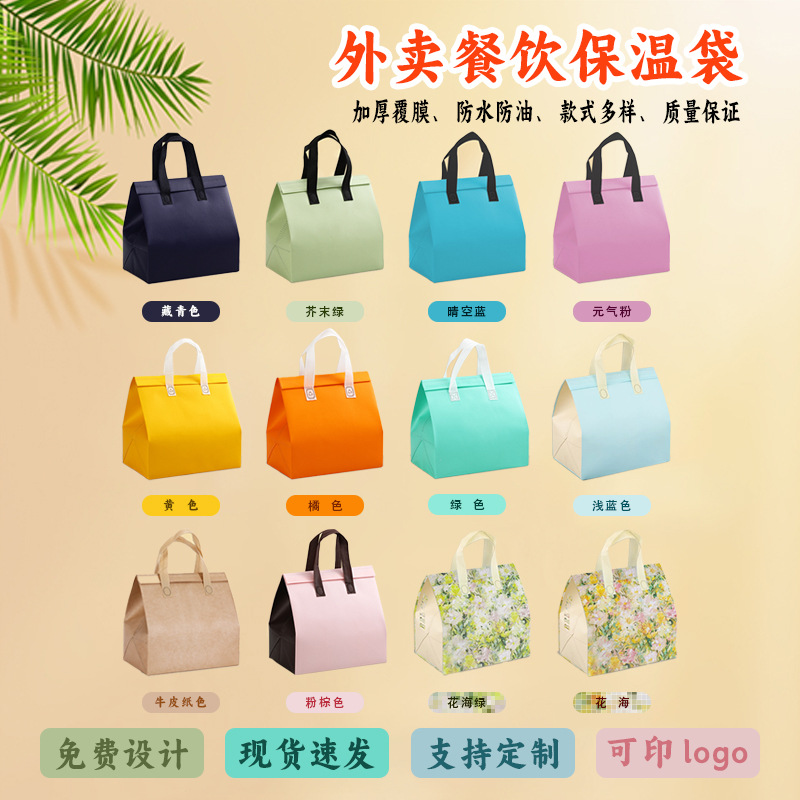不織布手提げ外食業務用アルミ箔保温袋ミルクティーコーヒー厚手自封使い捨て梱包袋