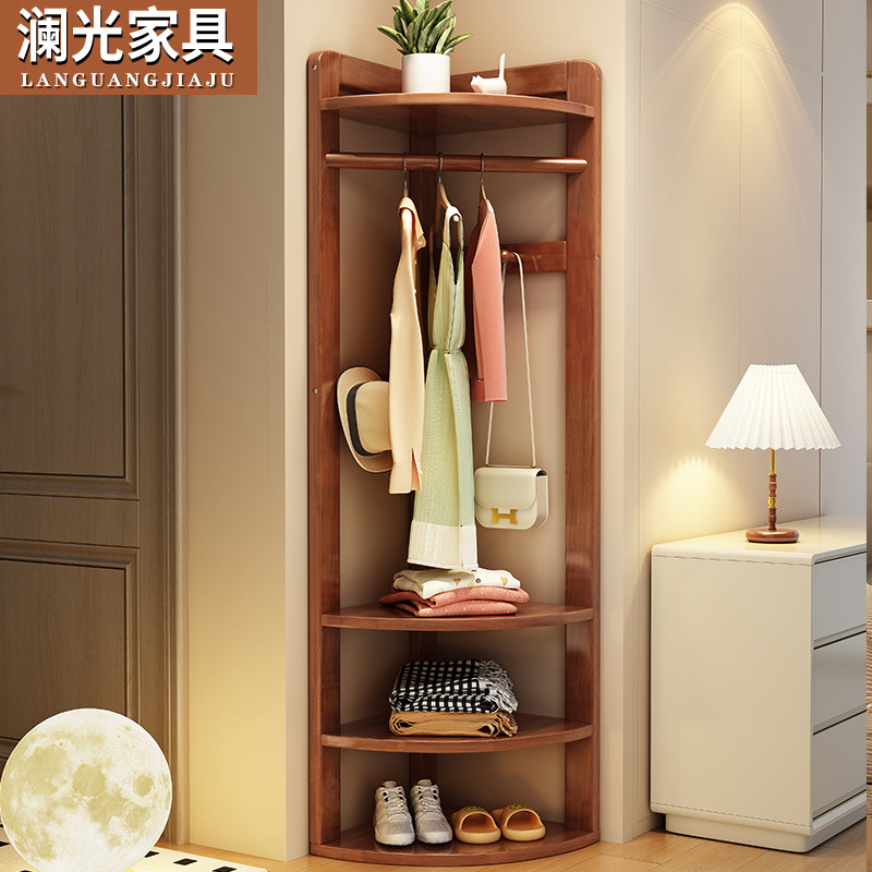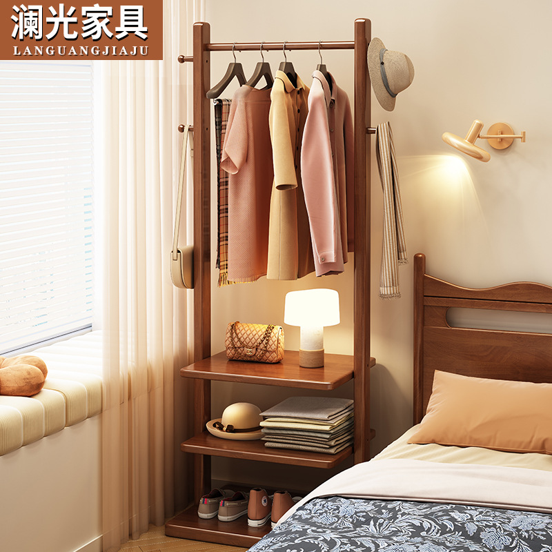 家庭用物置棚実木ハンガー床リビングルーム寝室シンプルハンガー多機能衣類収納フードラック