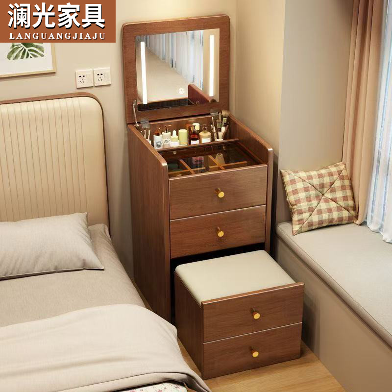 実木化粧台闘盤一体化粧テーブルカバー鏡家庭用寝室ベッドサイド小型多機能収納キャビネット