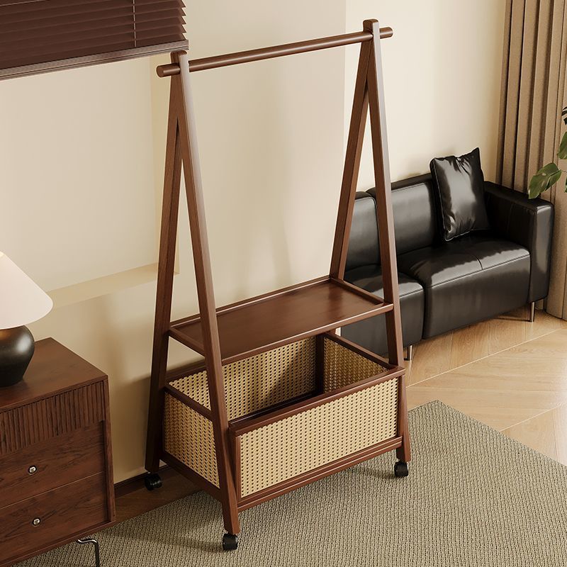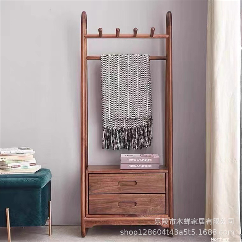 北米黒胡桃原木コートラック北欧現代シンプル寝室着地実木掛け物棚一体棒