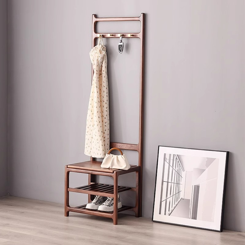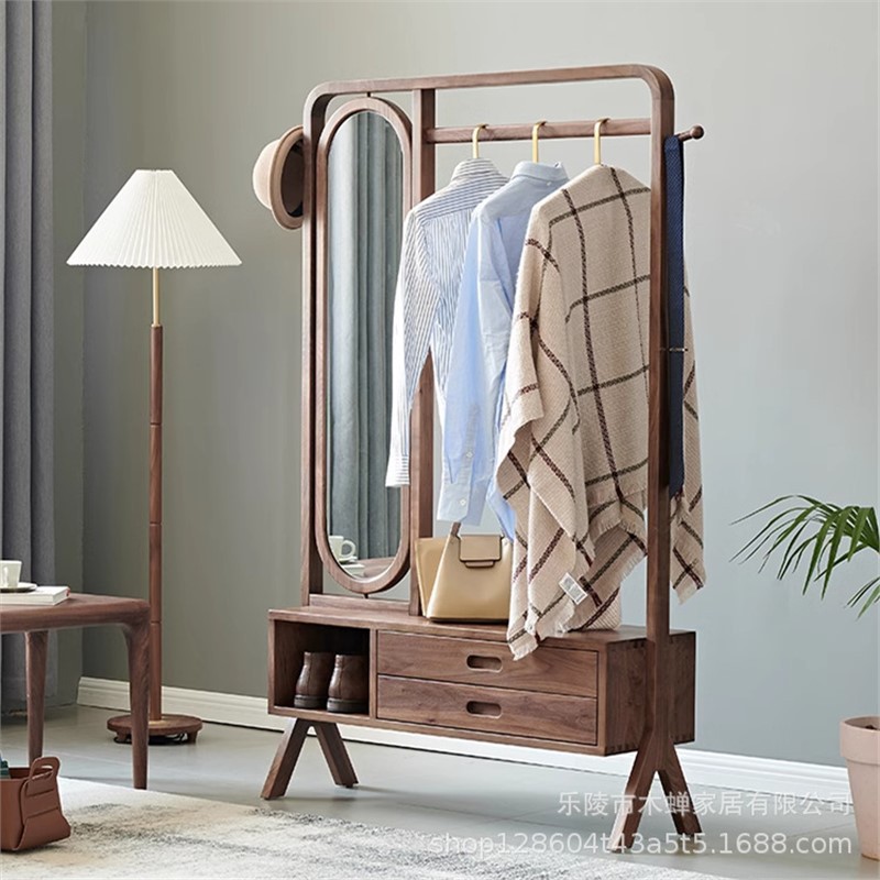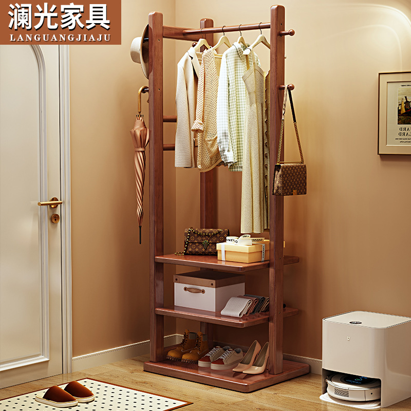 北米黒胡桃実木服ラック寝室収納棚現代シンプルな靴交換ハンガー一体物棚