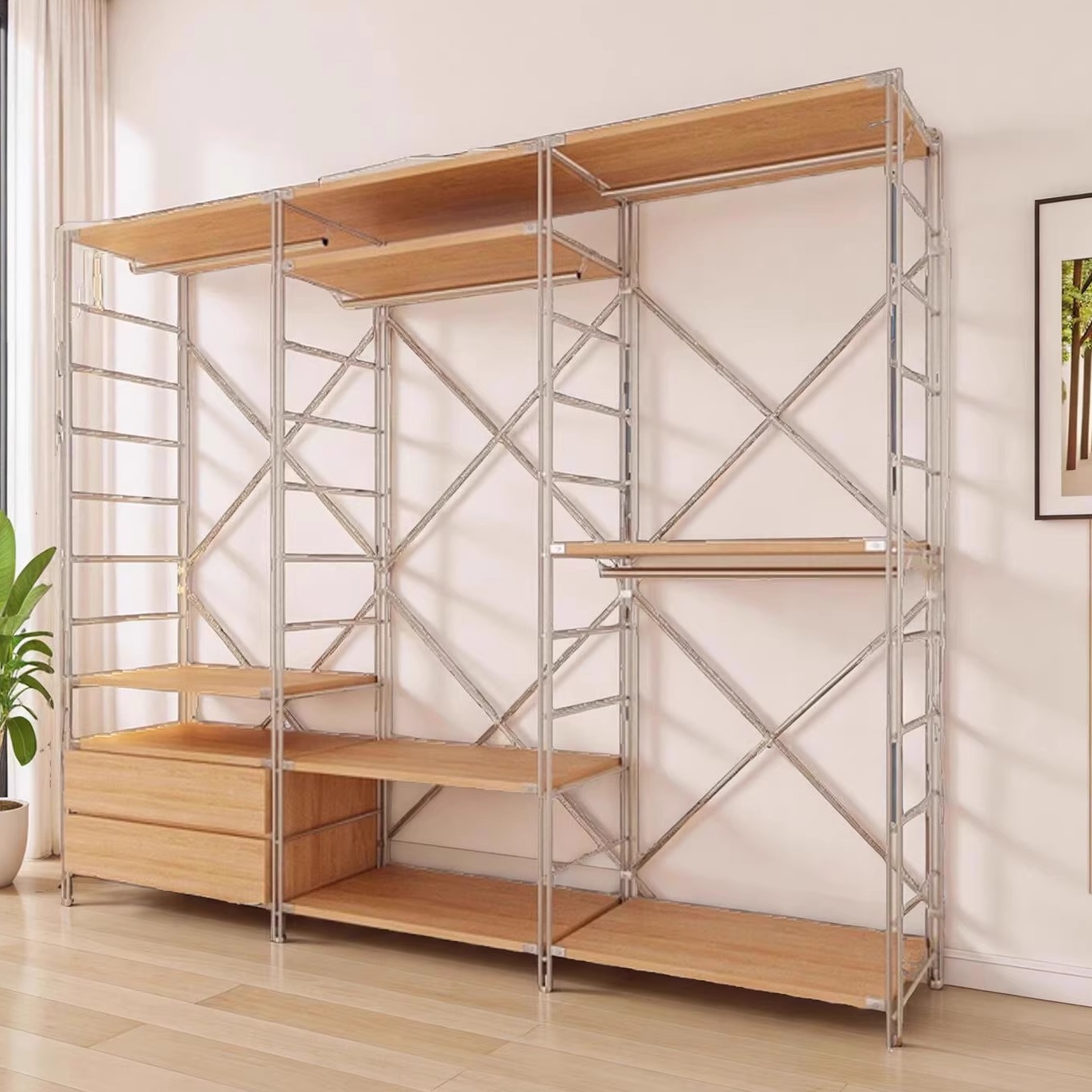 オープンワードローブ掛けハンガーリビング掛けハンガー床置き和式簡易物置棚ステップタンス組合せ