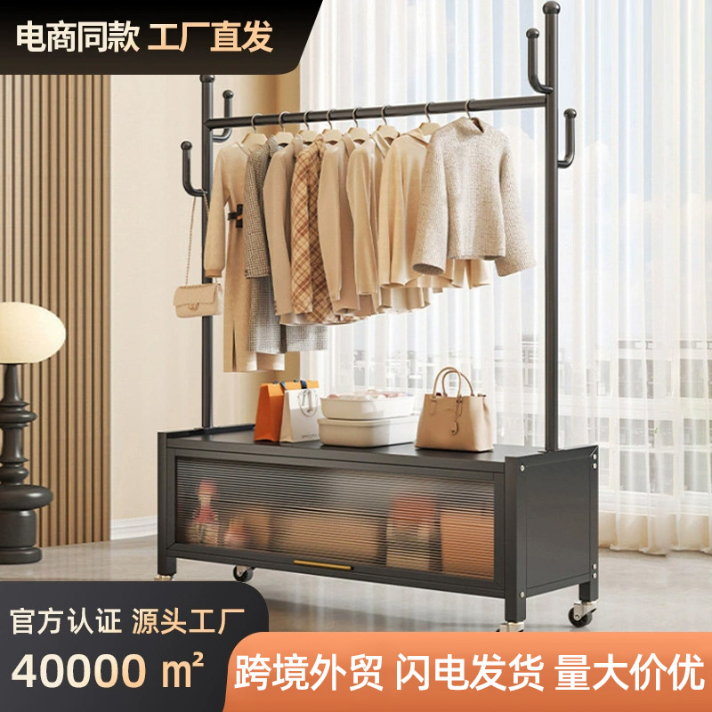 寝室ハンガー床置き縦型鋼管厚手太めフードバッグ収納棚プーリーins風高颜値