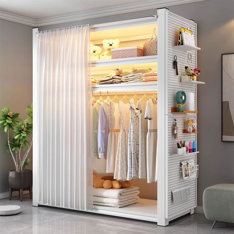 2025 ワードローブオープン衣類ラック収納ラック遮断カーテン収納厚みのある多層賃貸住宅シンプルなコートラック