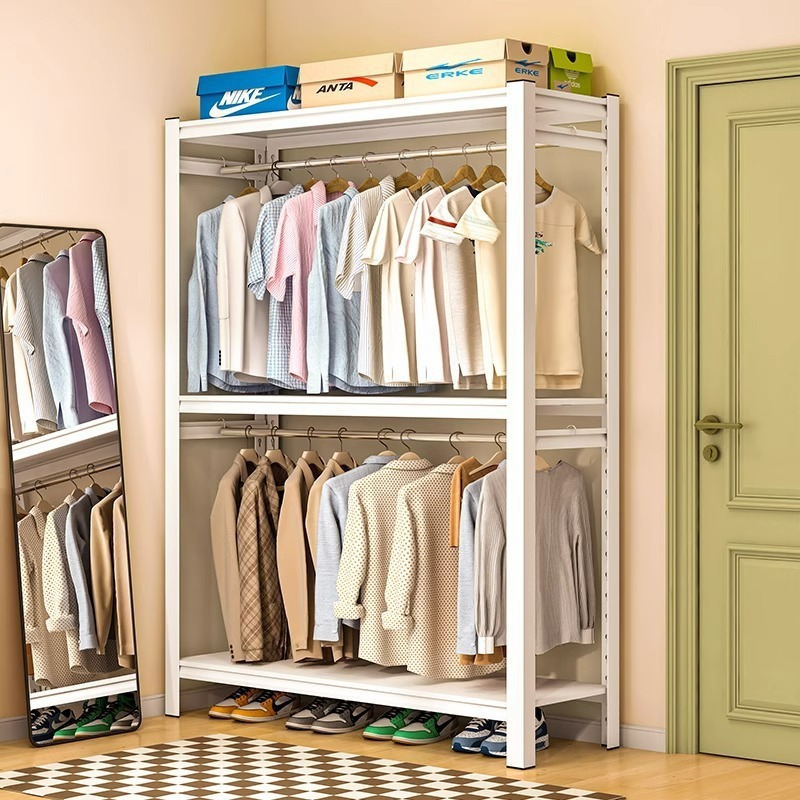 衣類乾燥ラック床置き家庭用屋内衣類ラック寝室衣類ラック部屋衣類収納ラックダブルロッドコートラック