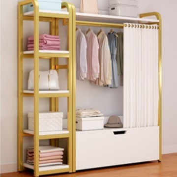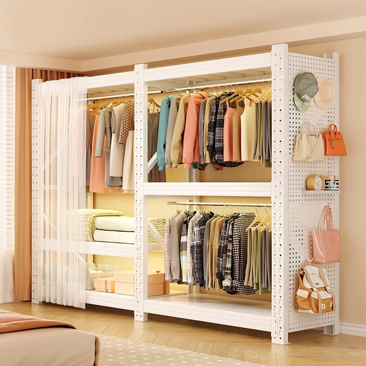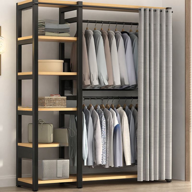 新しい収納ワードローブオープンワードローブカーテン寝室オープン多層シンプルコートラックレンタルAoyue