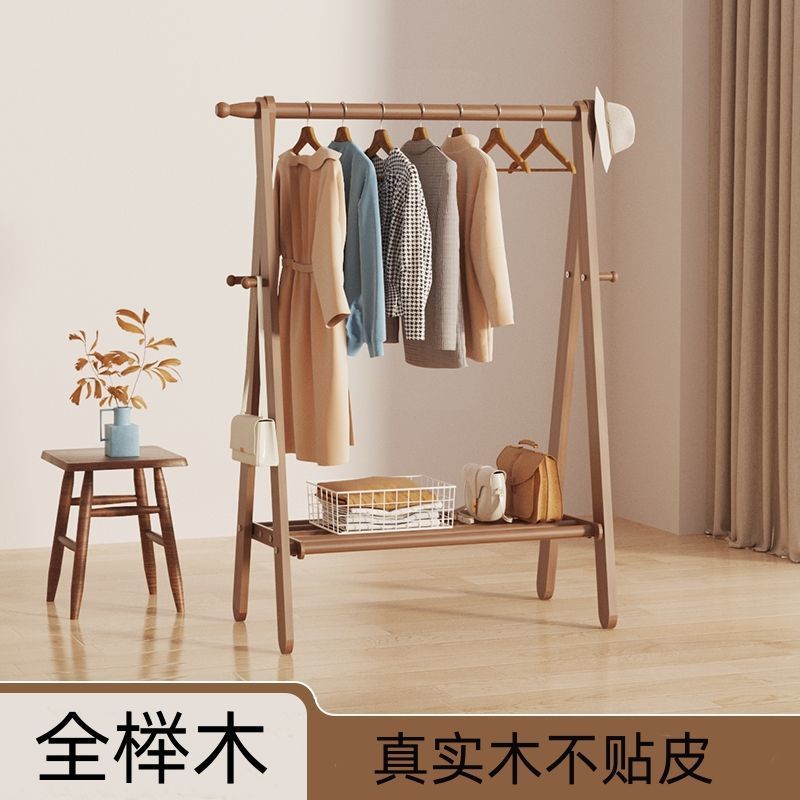 無垢材の衣類ラック床置き寝室ホーム衣類ラックモダンシンプルな屋内コートラックシンプルな衣類乾燥ラック