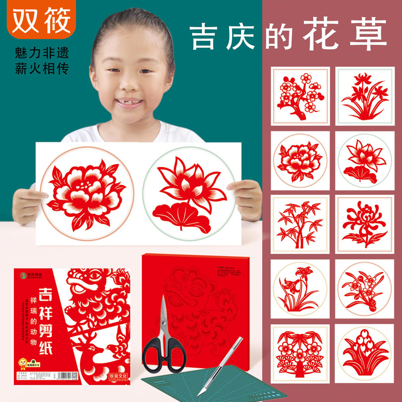 吉慶の草花切り紙中国風非遺留DIY年配児童伝統親子幼稚園