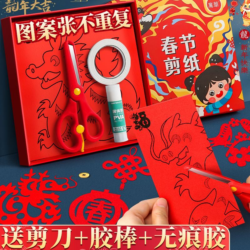 2025蛇年切り紙道具セット中国風窓花紙子供元旦手作りdiy制作春節幼児
