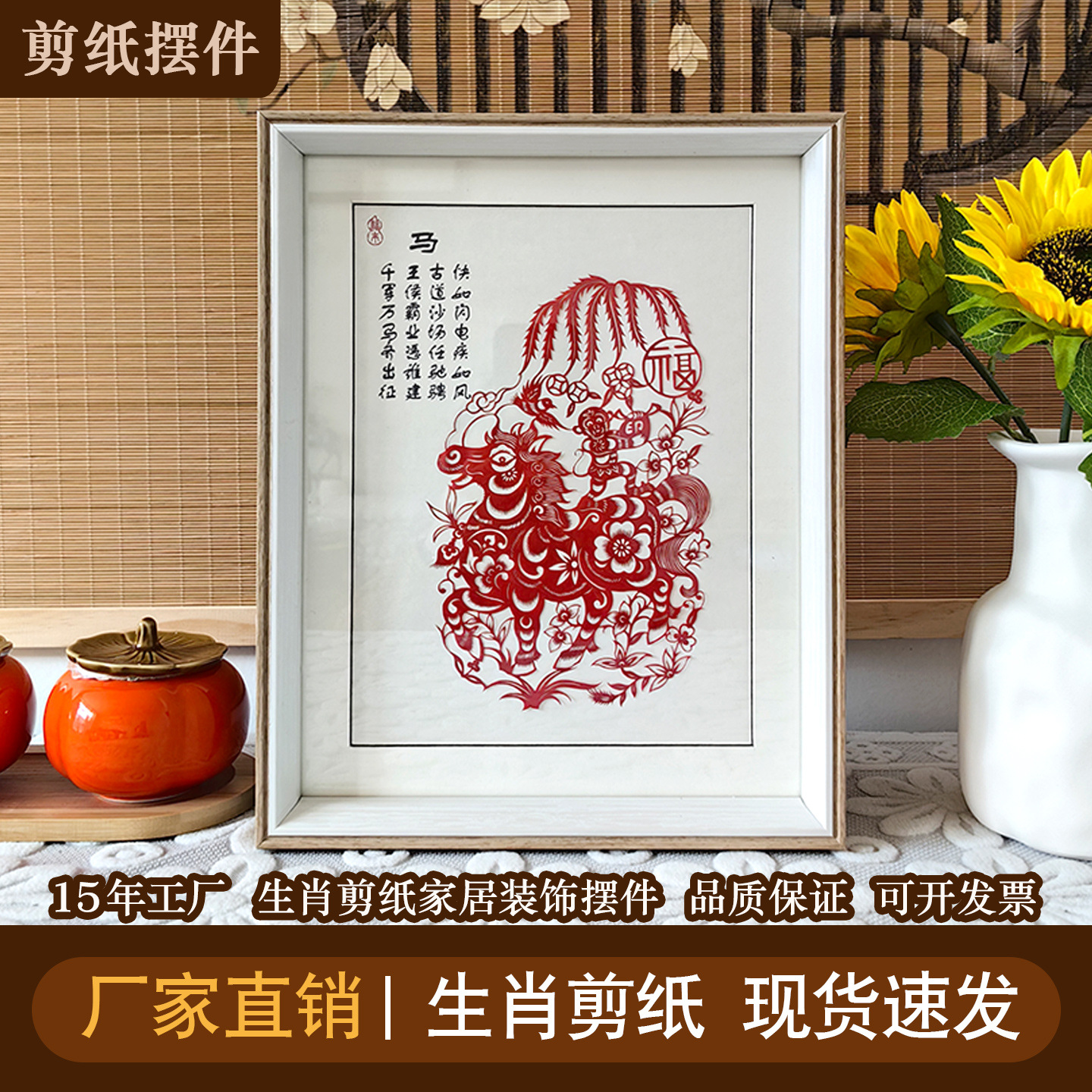 メーカー直販蔚県切り紙窓花十二生肖カラーセット色立体切り紙実木画枠完成品相