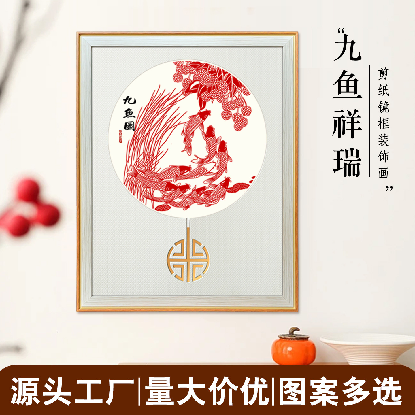 中国風の特色のある手作りの蔚県の切り紙の窓の花の完成品の額縁のペンダントの装飾画の中国式の風格の9魚の祥瑞