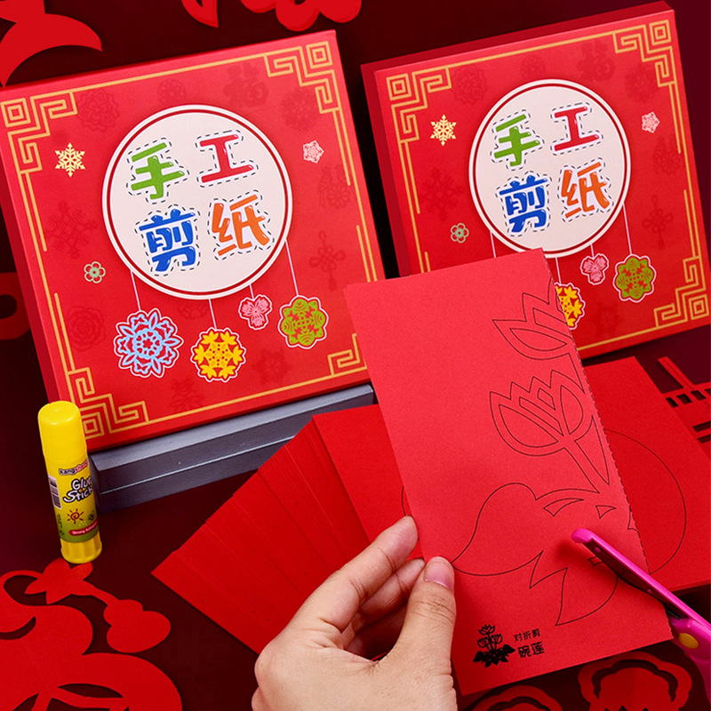 非遺産の窓の花の切り紙の手作りの材料は幼稚園の伝統の民俗diy活動の子供の対称の図案の原稿を包みます。