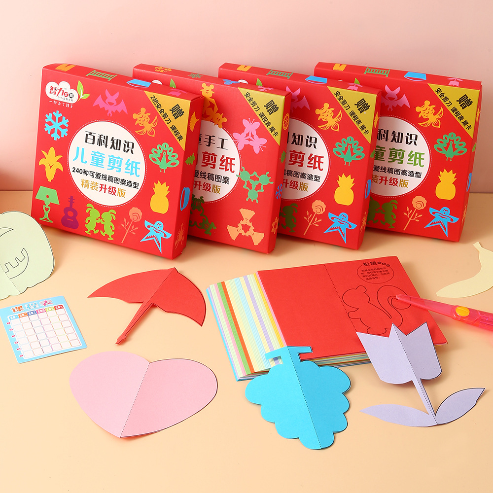 メーカー直供百科知識児童切り紙セット幼稚園手作り益智類カラー線原稿切り紙卸売り