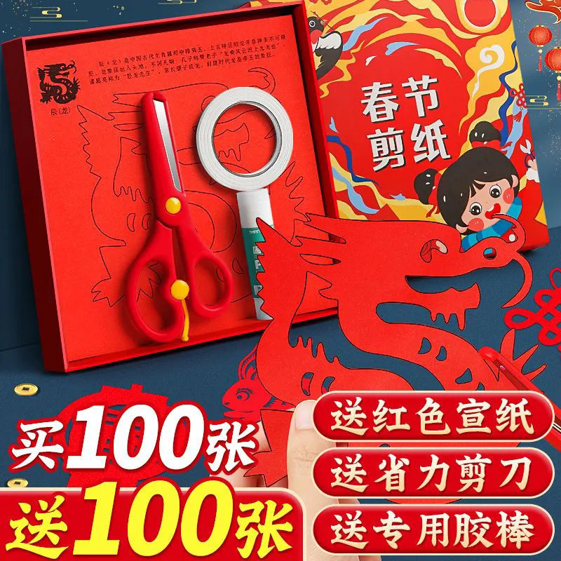 窓の花の切り紙diy2025新年のセットの半製品の子供の手作りの伝統の民俗の中国風の原稿の図案