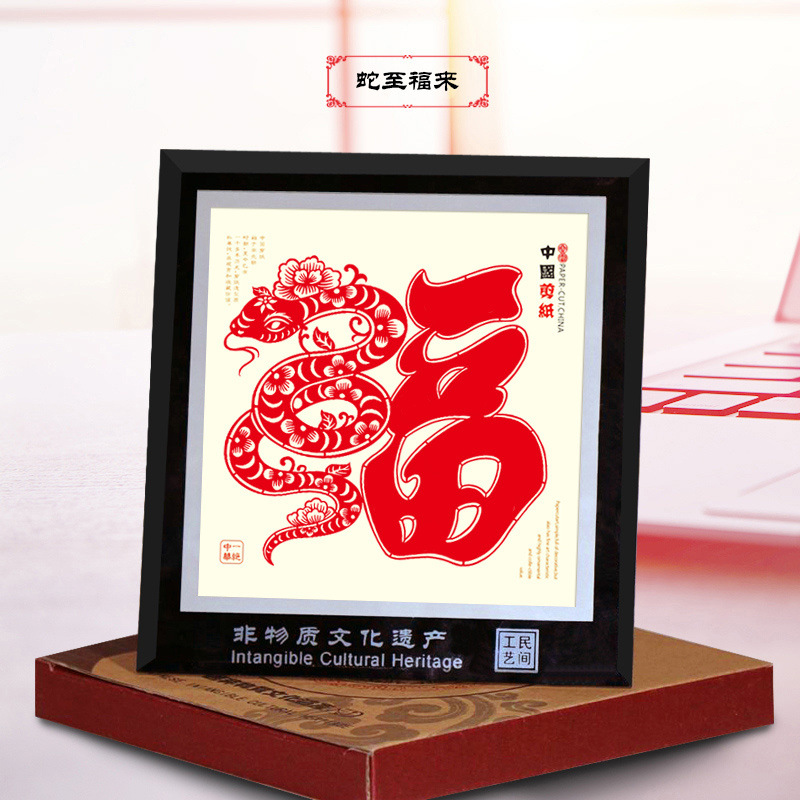 紙を切って絵を飾って中国風の特色の贈り物を飾って外国に行って贈り物をします。