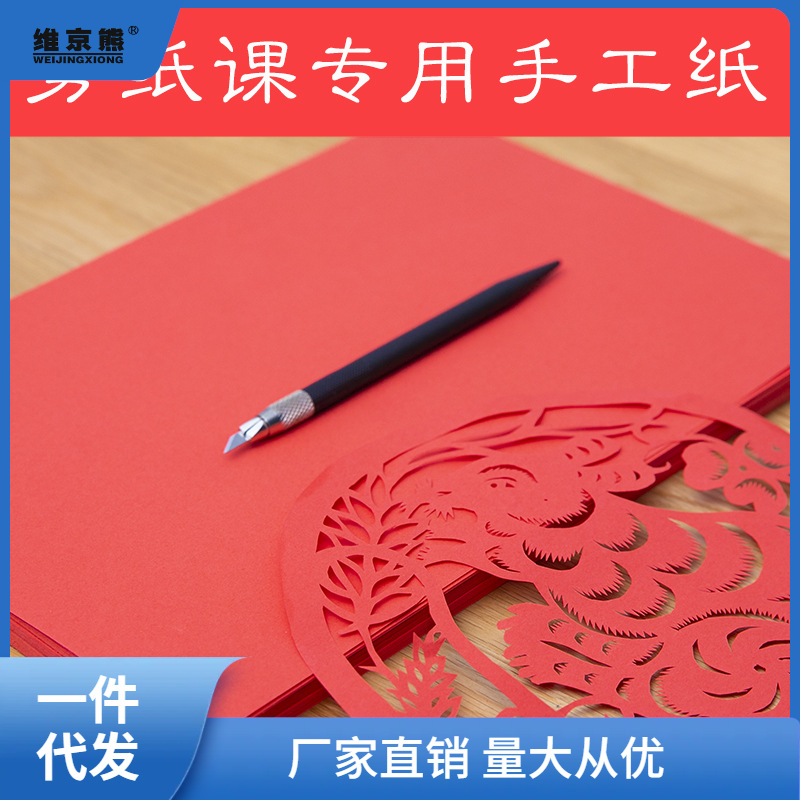 A4大紅両面宣紙a3彫刻紙児童diy手作り窓花切り紙21x21cm新年旧正月折り紙