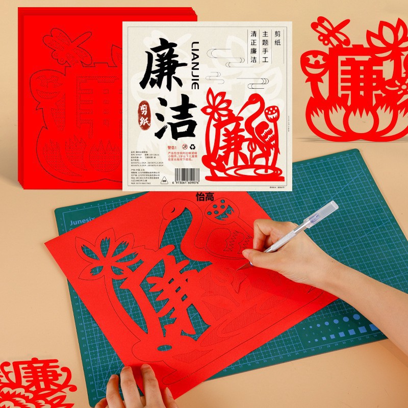 廉潔切り紙芸術作品非遺品diy半製品愛国赤色文化彫刻紙画原稿図案