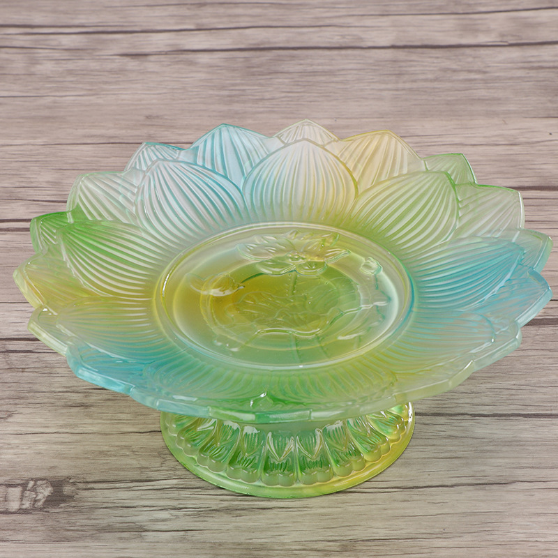 天水瑠璃皿果物皿仏具瑠璃蓮花果仏具用品果物皿七色琥珀色果物皿