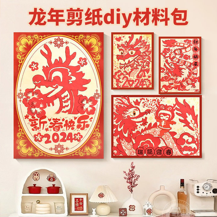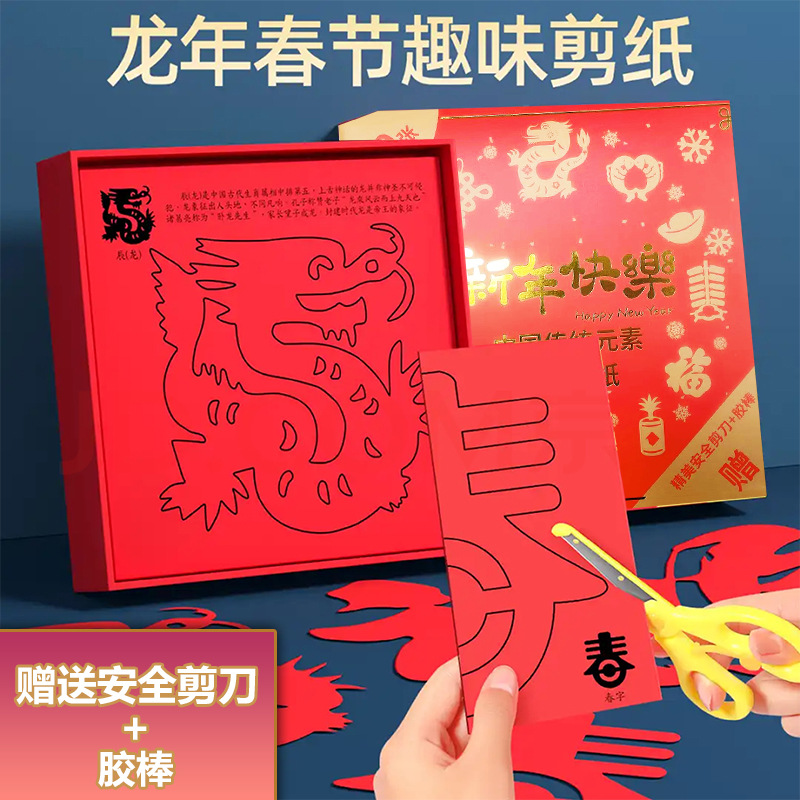 2024龍年カット紙中国紅新春窓花伝統風文化クリップアート学生手作りdiy材料バッグ