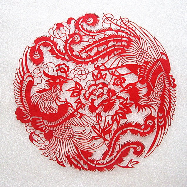 鳳凰の牡丹の花は手作りで紙を切ります。