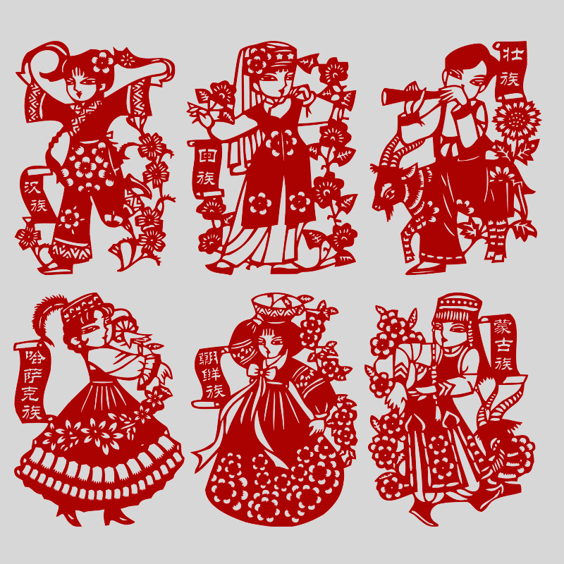 中国の伝統的な紙の56の民族の切り紙の窓の花の子供の幼稚園の完成品の透かし彫りの紙は学生の作品を描きます。