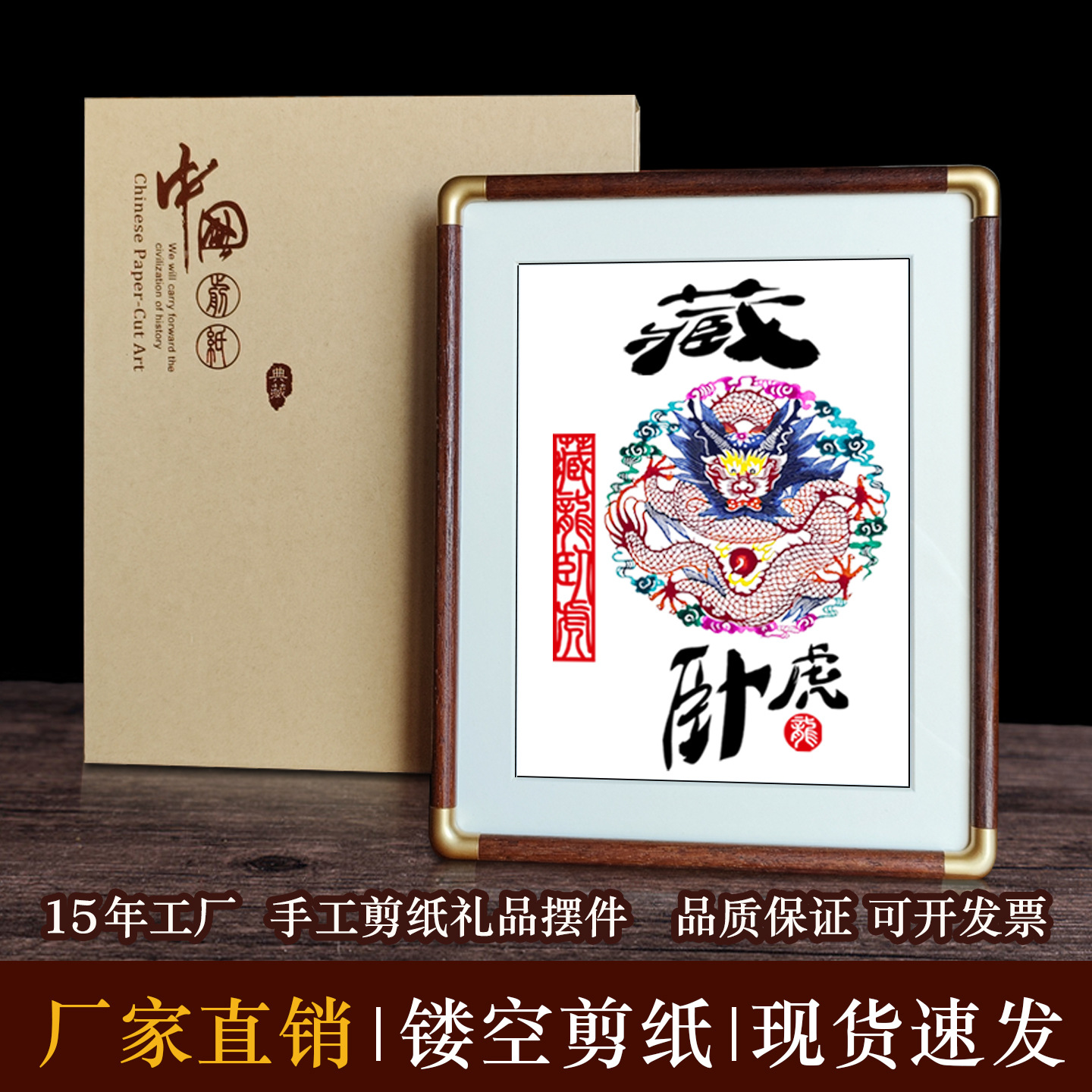 中国風の特色の手作りの切り紙の窓の花の装飾画の竜年の切り紙のチベットの竜の臥虎の二龍の玉の海外の贈り物
