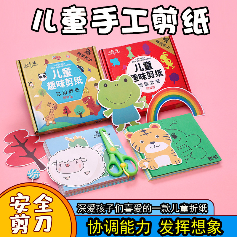 子供用切り紙折り紙ギフトボックス手作り切り紙セットハサミ早教玩具diy益智賞品